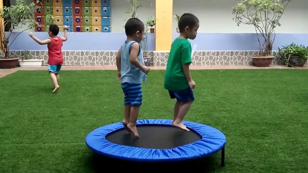 Sàn nhún là một trong những đồ chơi cho bé không thể thiếu ở các trường mầm non. Đây là một sân chơi an toàn cho trẻ từ 2- 10 tuổi. Khi cho trẻ chơi, giáo viên, phụ huynh quan sát các con nhúng nhảy một cách thoải mái.